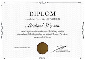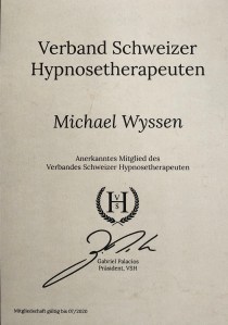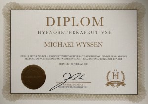 Nun bin ich Dipl. zert. Hypnosetherapeut VSH/NGH , Dipl. Gesprächstherapeut nach INVALUATION® und Dipl. Coach für Geistige Entwicklung.